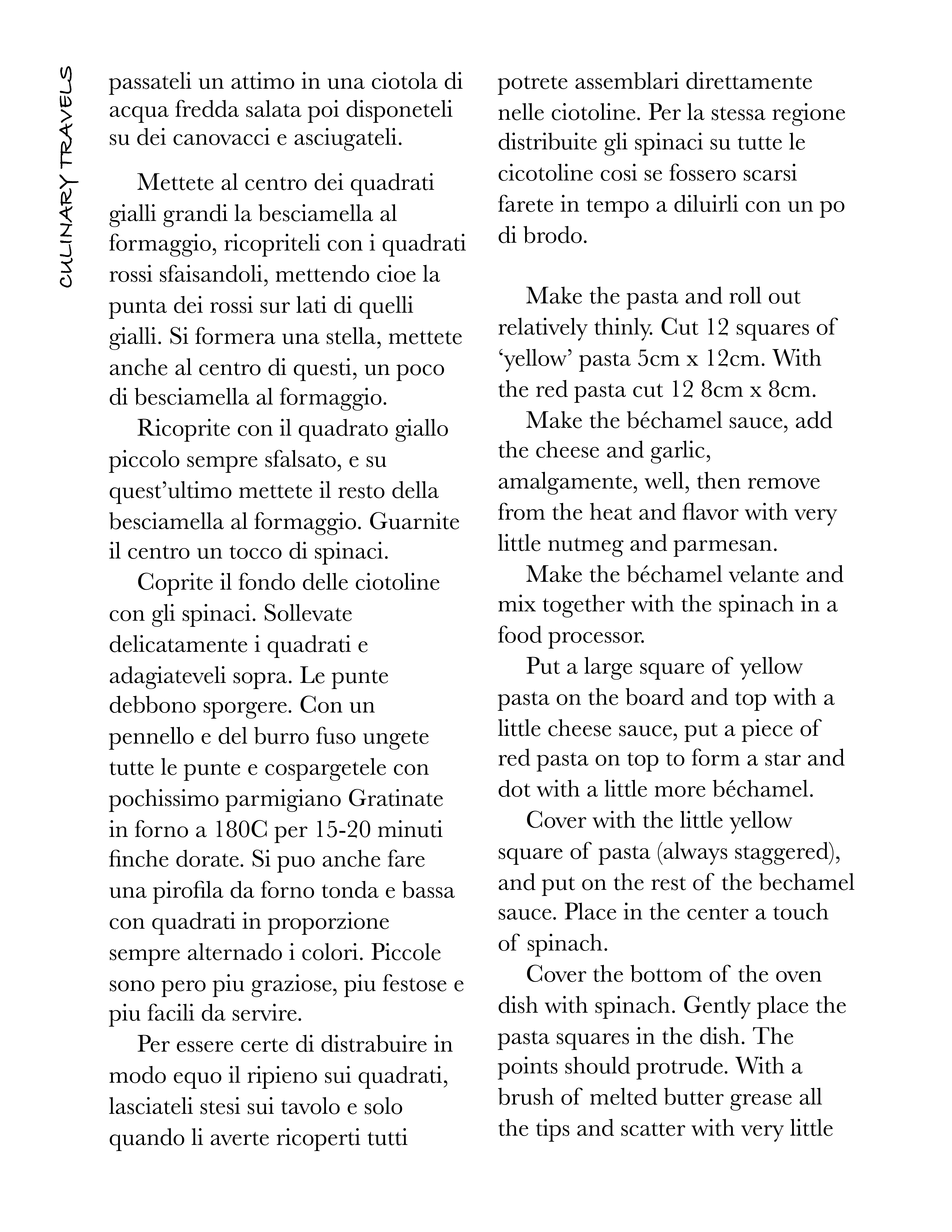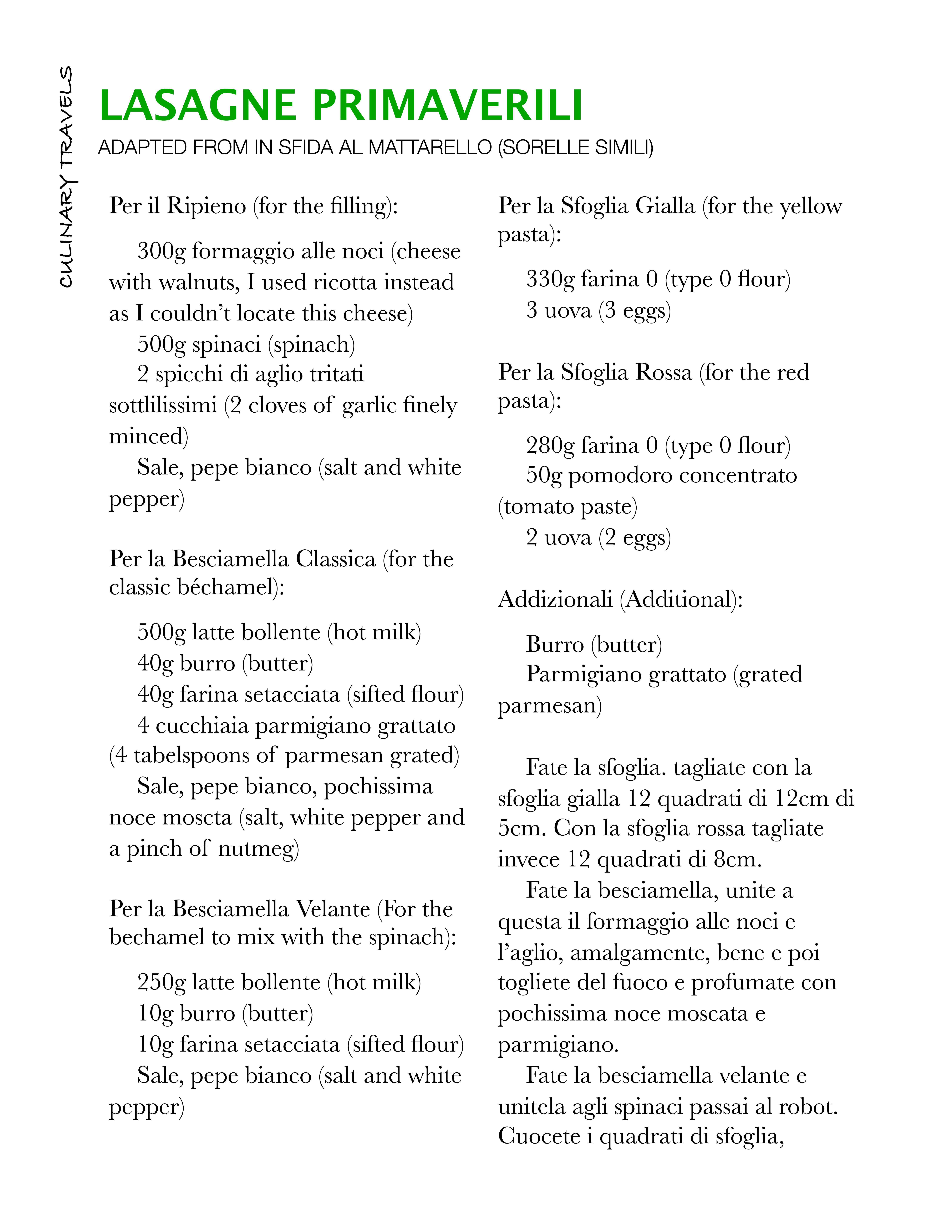 Will I make this again? Oh yes but not all the components in one day, it’d be more effective to make the sauces and fillings the day before and do the pasta and assembly on the day; I don’t mean it’d be better for the food but better for my stress levels. I like pressure but translating, shopping, preparing and cooking in the same day was too much, even for me; what I need now is a large glass of white wine, prosecco would suit me well.