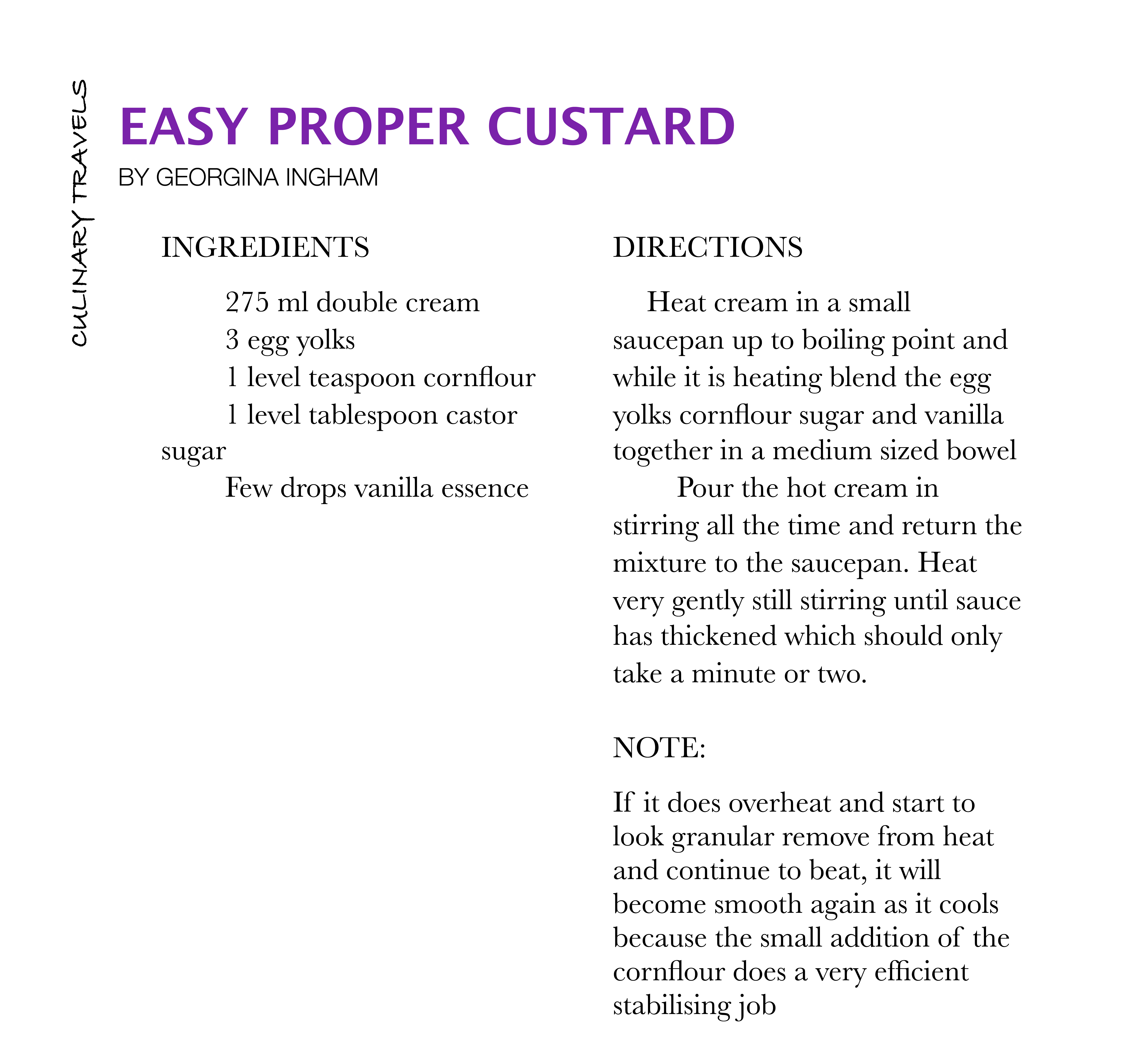 So to gratify my craving, I made custard an easy 'proper style' custard. I have to say it was the easiest custard I’ve ever made, no worry about scrambled eggs, split mixtures or it being too runny. Absolutely perfect.
