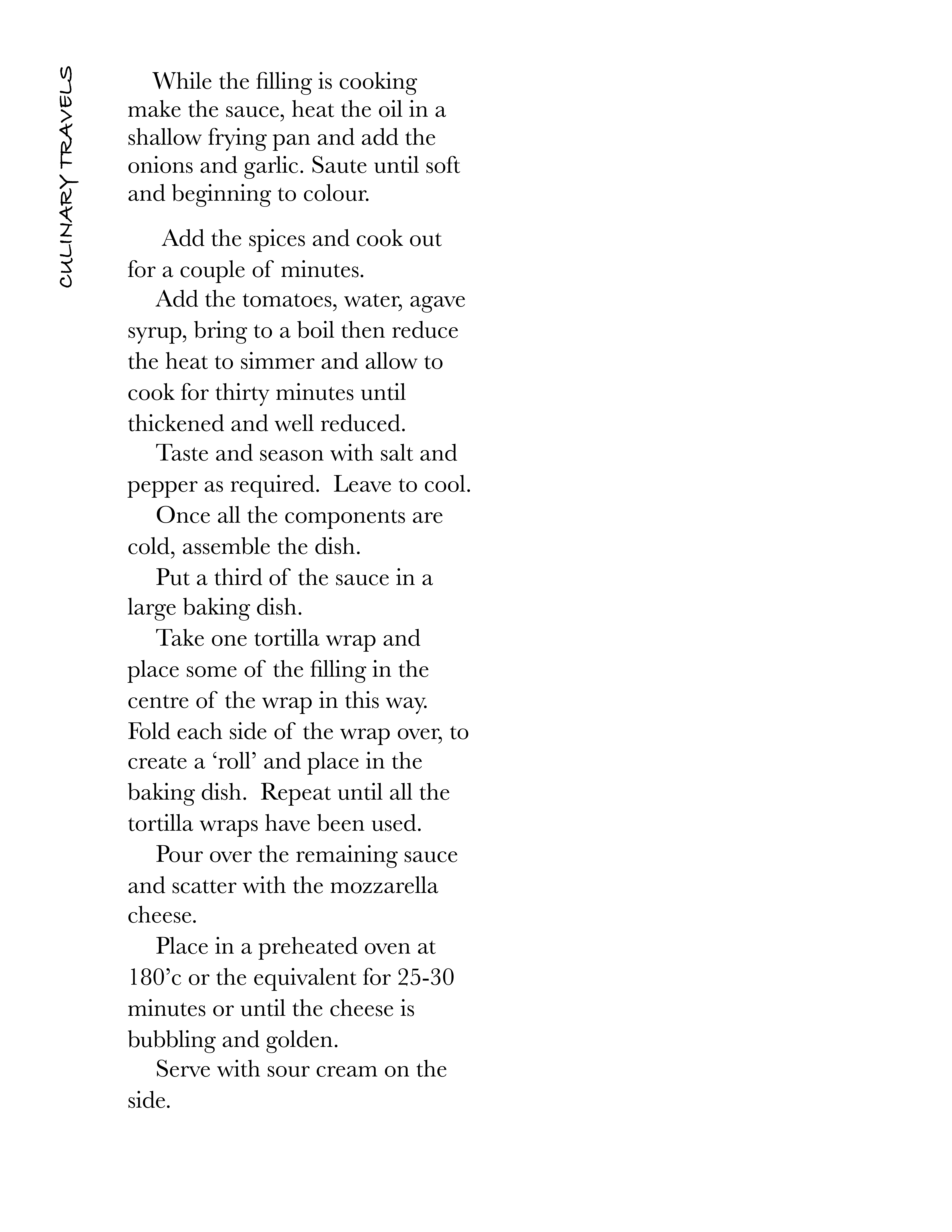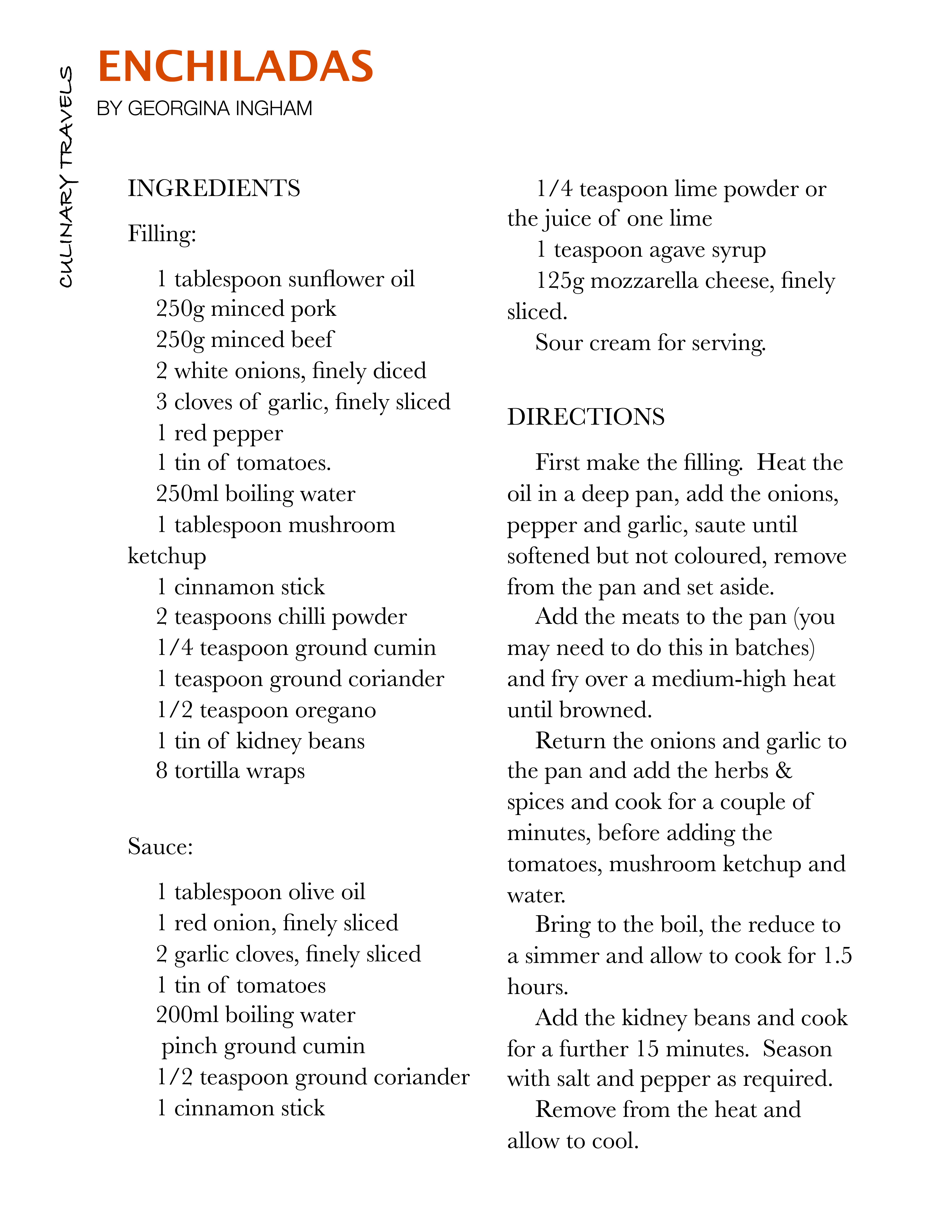 I believe it’s the small things in life which bring the most joy; things such as having a steaming hot cup of tea ready for someone coming in from the cold, taking the time to search out a small gift you know is going to make a loved one smile. These things give life a richer quality, but because they are so small, they are often missed in our hectic lives, making it even more special when one if focused on. Planning and cooking a favourite meal has to fall into this category surely. Which is why, following my mum’s discharge from hospital yesterday I set about planning/shopping for/cooking one of her favourite meals – enchiladas.
