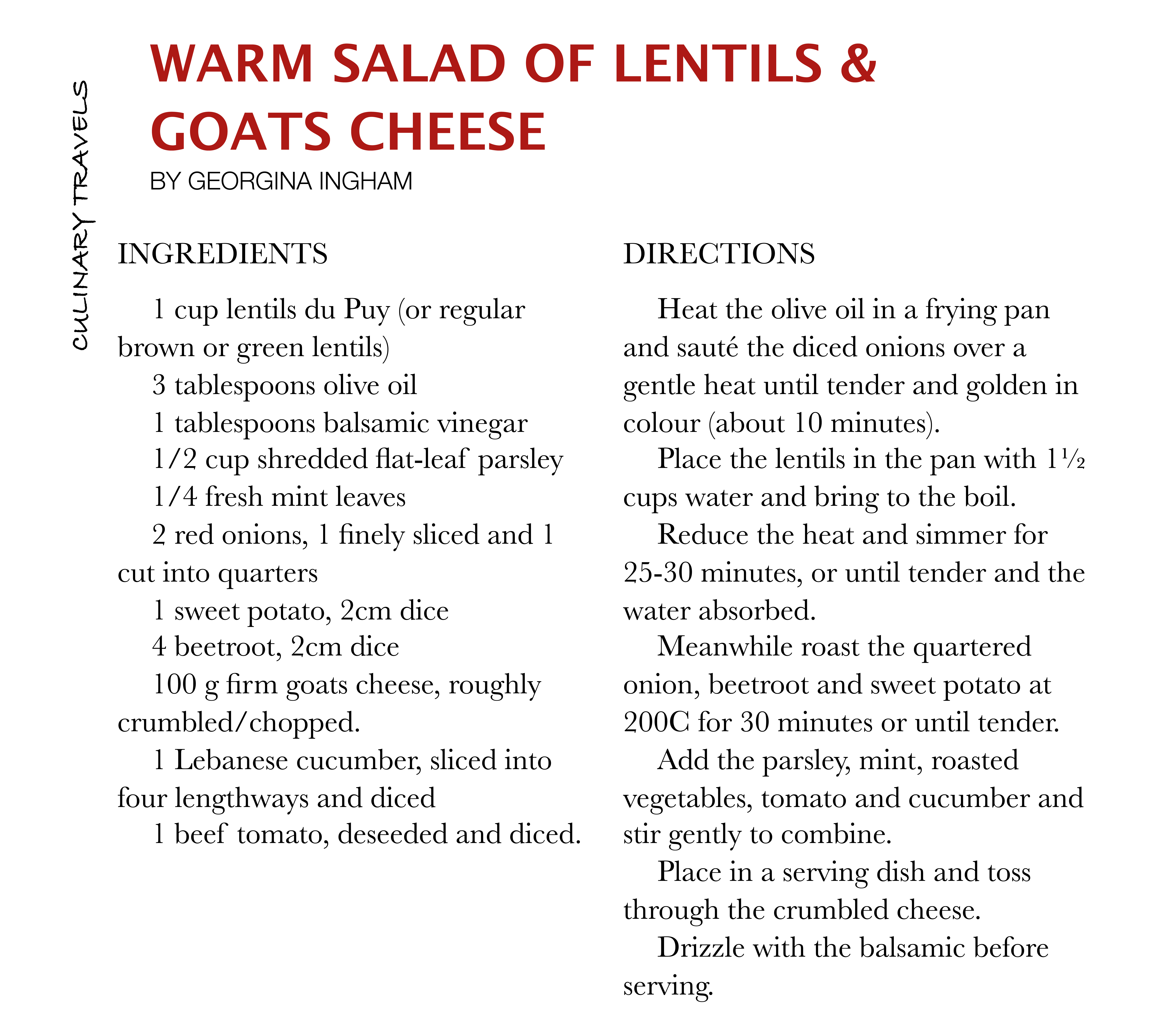 That’s tonights dinner sorted then. A warm salad of Lentils and goats cheese with french style country bread, perfect.