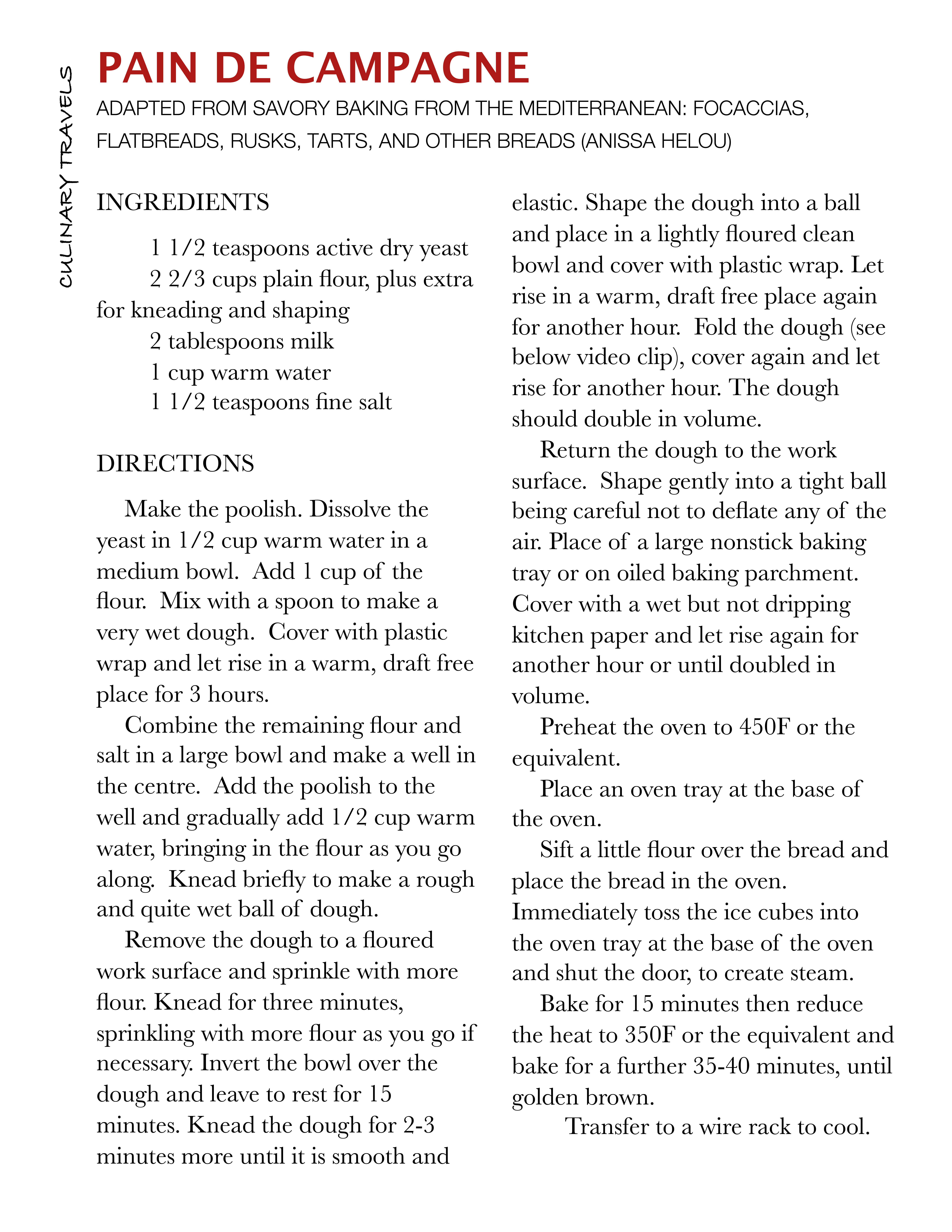 Pain de Campagne is a French country style bread, made from a made from a natural leavening similar in idea to sourdough. It is traditionally shaped as a boule but may be formed into a batard instead.