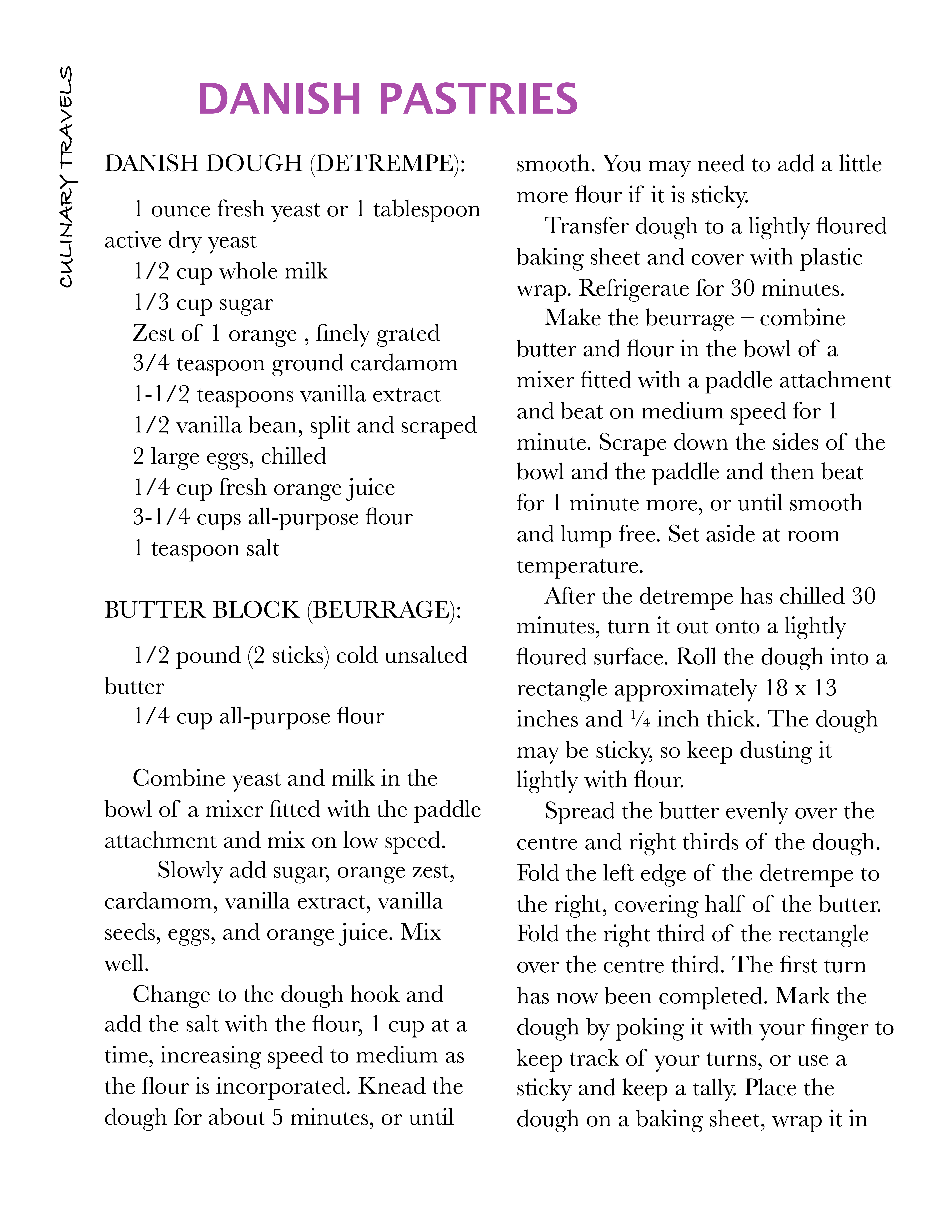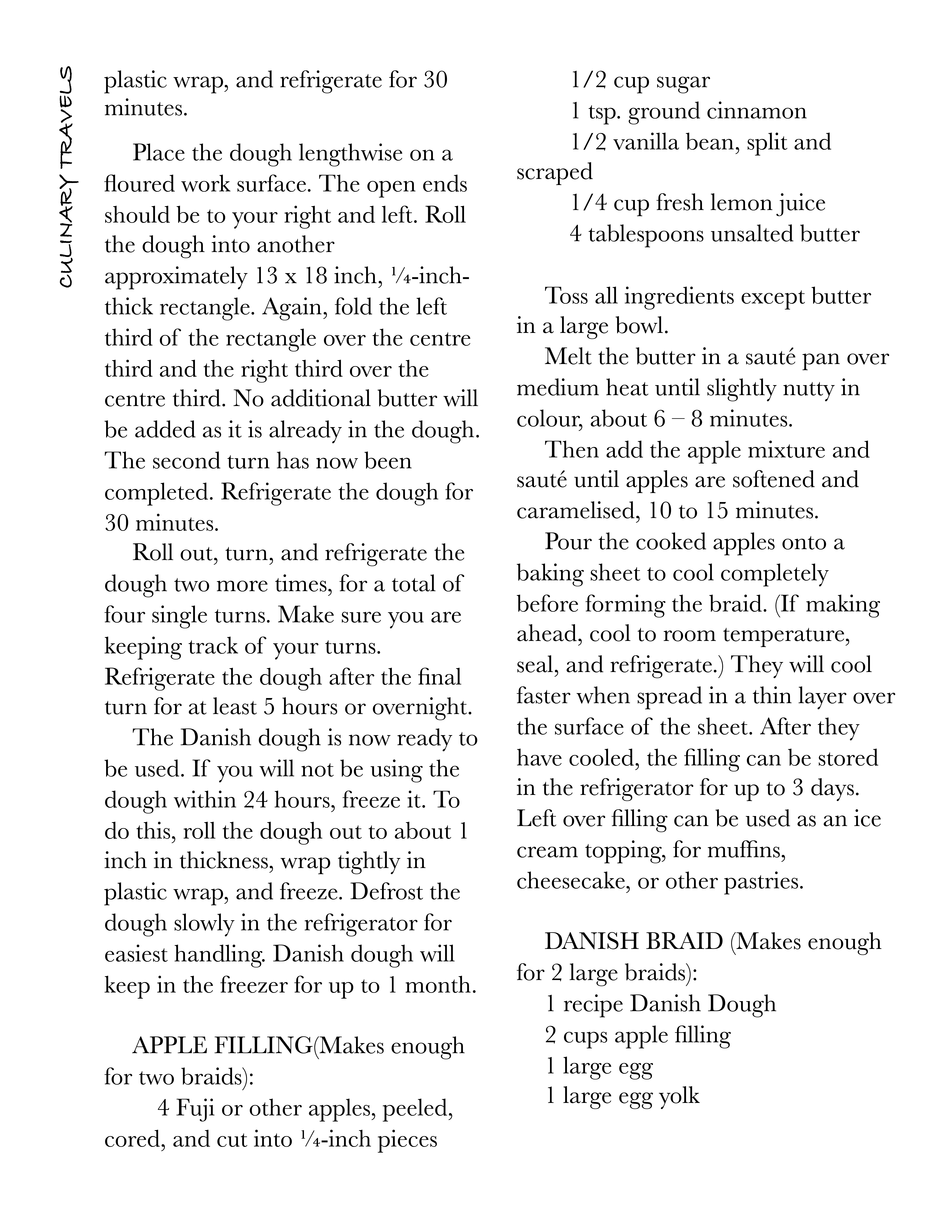 Laminated doughs are those doughs in which butter is worked into the layers of dough to off moisture, and the resulting steam then causes the thin layers of dough to puff and rise, giving a light airy textured product. They are I have to confess rather a weakness of mine and now I know how (and have the confidence) to bake them they’ll become a regular part of baking repertoire.