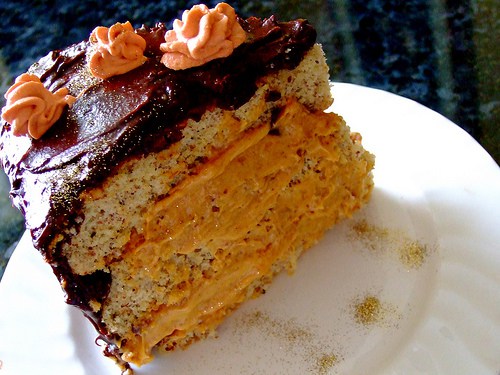 As for the decoration, I’m quite pleased with myself. It’s the first time I’ve ever piped decoration onto a cake and I don’t reckon it looks so bad for a novice. Plenty of room for practice though, but we’ve all got to start somewhere. Doesn’t that mean the Daring Bakers are doing their job though? Pushing us to our limits and making us try new and sometimes tricky things? Sometimes we just need a shove in the right direction don’t we.
