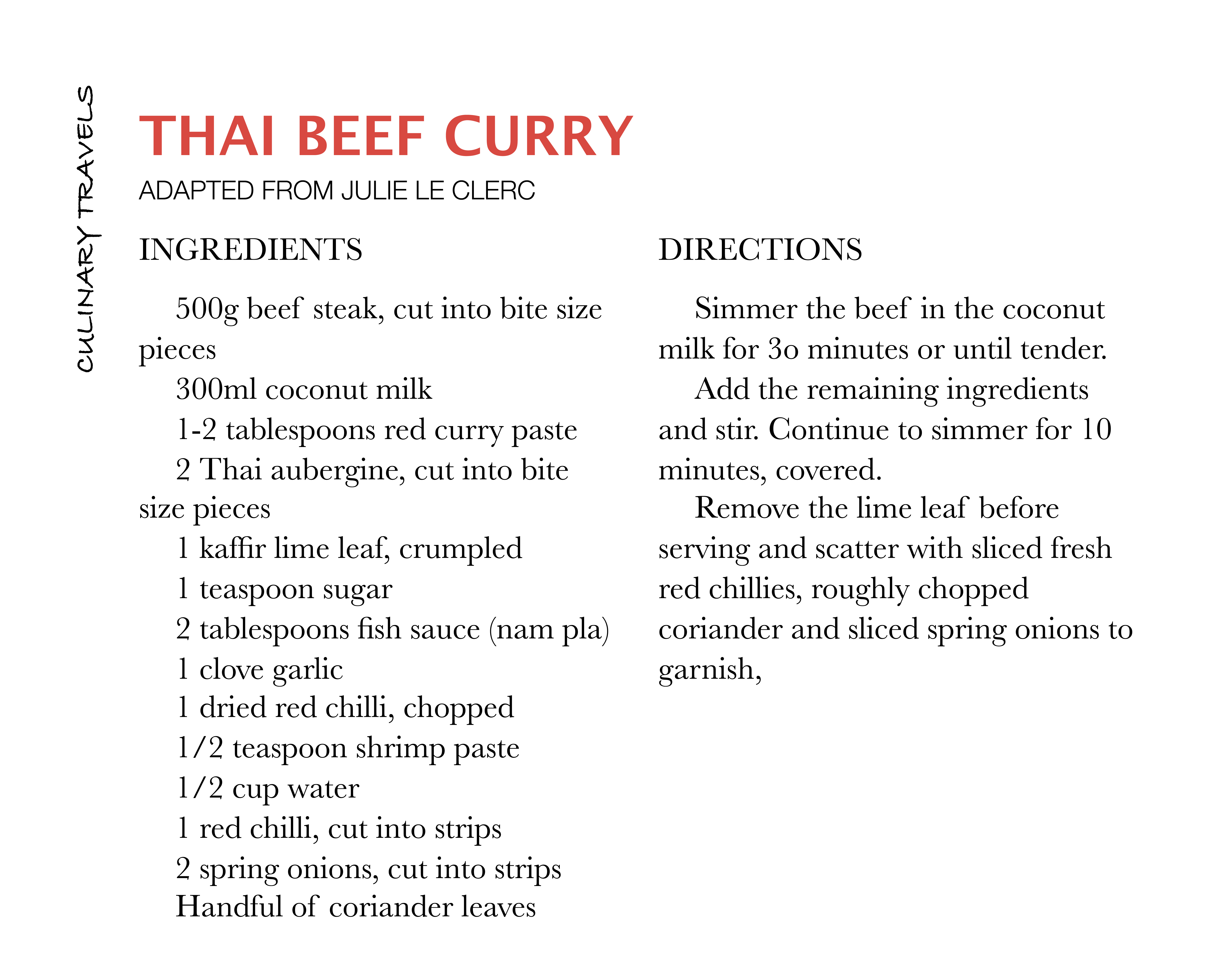 Rather spookily one of the recipes was for Thai Beef Curry, spooky because on Monday I got some steak out of the freezer ready to cook a beef curry but it hadn’t defrosted so I left it to use on Tuesday and low and behold this lovely recipe was available to use then – must’ve been fate.