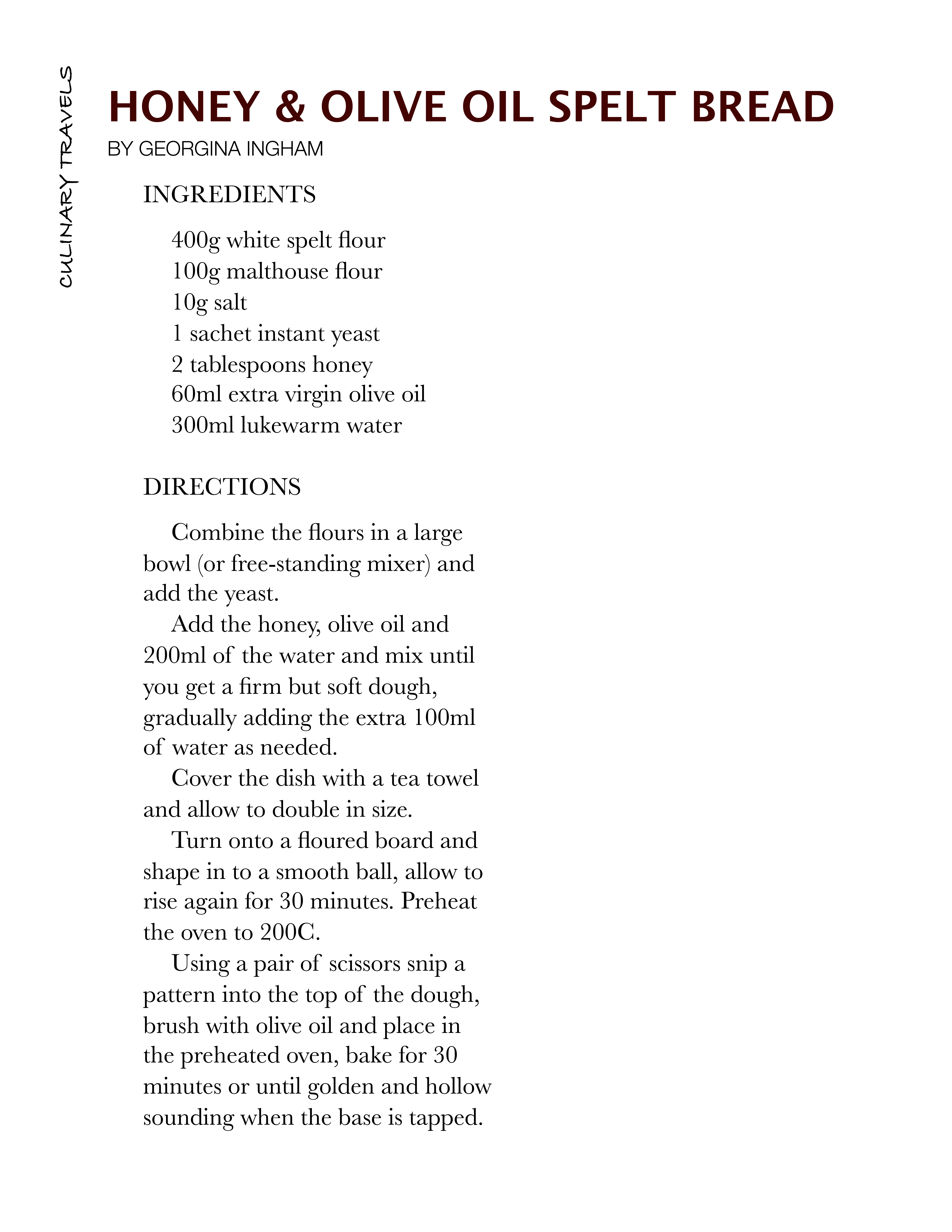 I decided to bake some bread to go alongside our vegetable bake dinner today (any excuse) and came up with a honey and olive oil spelt bread, another foray into creating bread recipes for me and that can’t be bad at all.