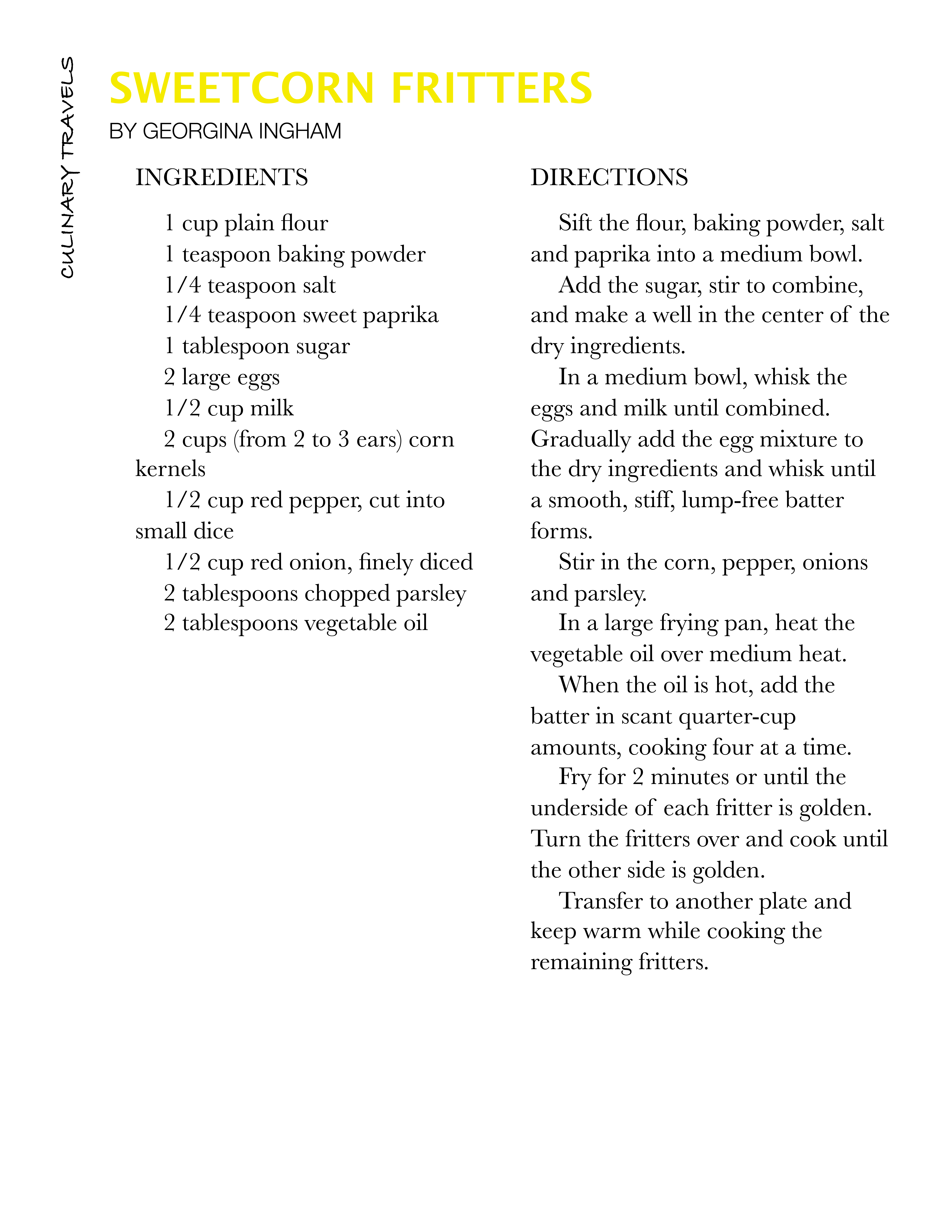 These fritters are great served with a simple relish as a light lunch or, served as an accompaniment, or to make a more substantial meal from them with crisp bacon and cockles.