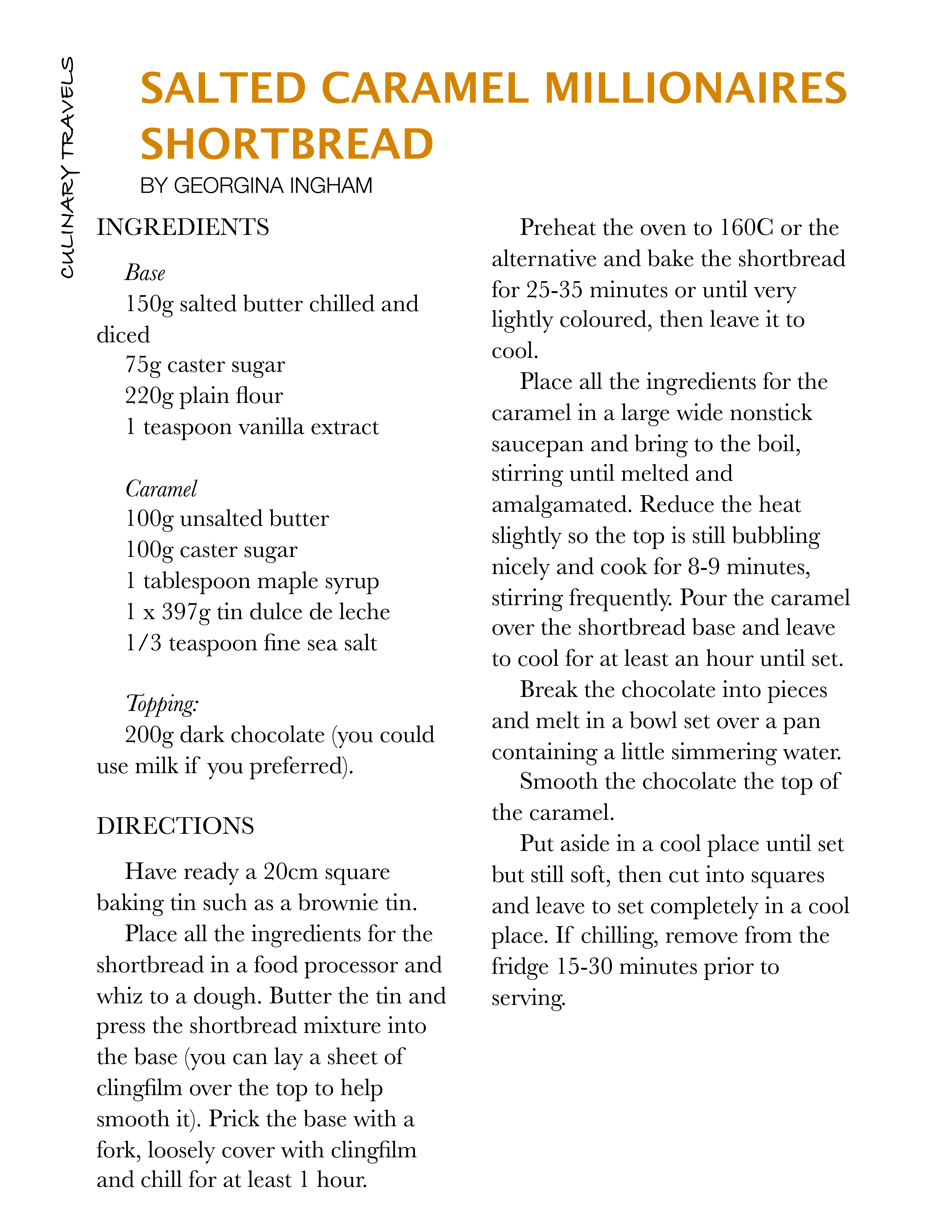 Having a recipe means you can push the envelope with the different elements. After all, fresh shortbread is delicious, and you can make the caramel-and-chocolate layers as thick or thin as you wish. Eat as a biscuit with tea, or serve as a dessert with ice cream.