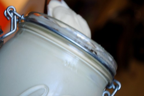 You just wouldn’t believe how easy creme fraiche is to make. There seems to be several ways to go about it but the option I chose was incredibly simple. Basically you combine 600ml of double cream with three tablespoons of creme fraiche (a bought tub) in a sterilised jar and leave it to stand at room temperature for 24 hours, stirring every two/three hours, by the following day you have wonderful, thick creme fraiche which is ready to be put in the refrigerator or used. The jar of creme fraiche will keep for up to two weeks in the fridge and to make more you simply take three tablespoons of the creme fraiche out of the batch and combine with more cream, and so the cycle continues.