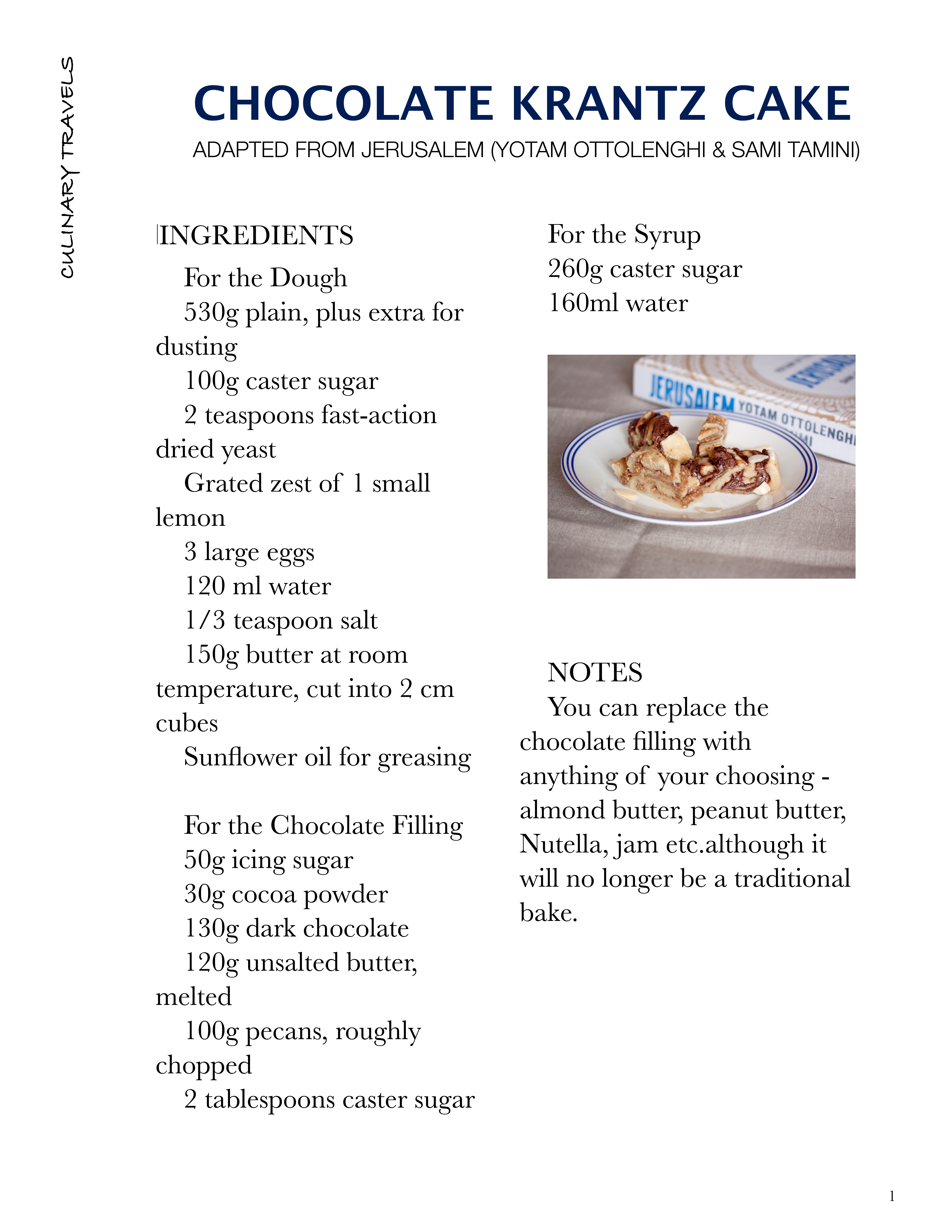 I received a copy of the new Ottolenghi book, Jerusalem, soon after publication, and within a couple of hours I was hooked. I knew this was a book that needed to live in my kitchen for easy, frequent access, as opposed to the rest of my ever expanding collection which reside in bookcases upstairs. Jerusalem is jam packed with gorgeous recipes, stunning photography and lovely notes on the history and culture of Israel through a culinary context. It is indeed a beautiful book; the cover is printed fabric - it's a lovely touch, though do I worry I'll get dirty in the kitchen. I've cooked several recipes from Jerusalem but one that has become a firm favourite amongst my sweet toothed family and friends is the Chocolate Krantz Cake. I will warn you, it is one of the longest recipes in the book, but it is not difficult and does not require a great deal of technical skill. It is time consuming and a bit of 'a faff' but great fun all the same. And, the end results make it all worthwhile anyhow, plus the feeling of accomplishment is hard to beat. In fact, it’s impossible to remain modest; ah go on gloat a little.