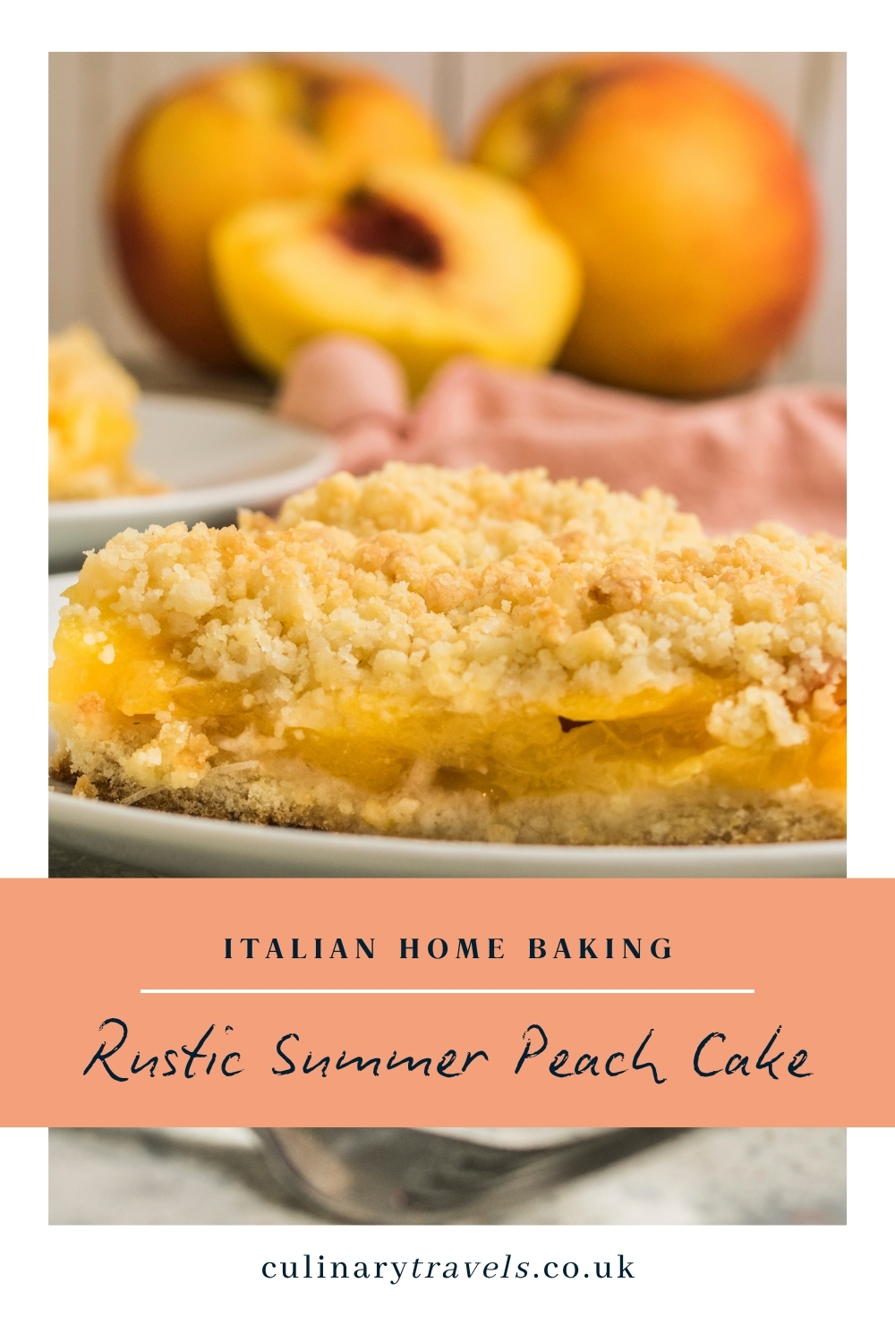 This rustic Italian peach crumble cake has a crumbly lemon-scented base, juicy peaches and a golden topping that bakes into soft, buttery rubble. A lovely summer bake to slice and share. Click the image for the full recipe.