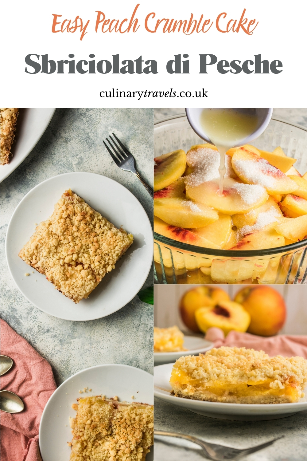 Served plain or with Greek yoghurt, crème fraîche or softly whipped cream, this Italian peach crumble cake makes an easy, generous dessert with juicy fruit and a buttery golden topping. Click the image for the full recipe.